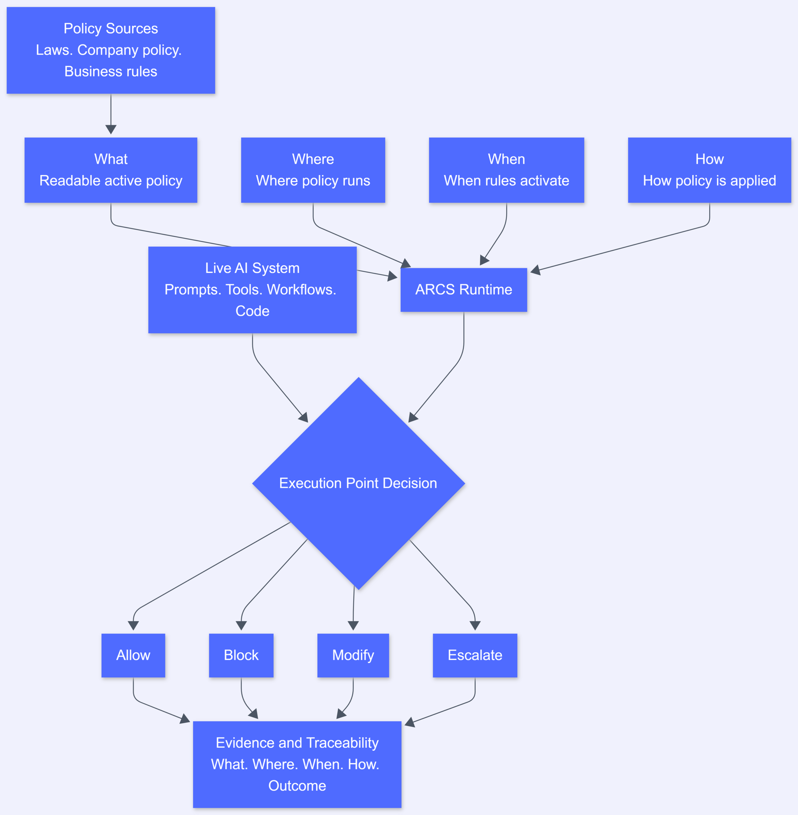 ARCS helps ensure approved policy is applied correctly in the live system, where AI decisions are actually made.